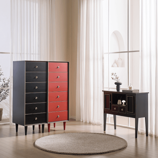 [헨지디자인] 플레르 6단 서랍장 SET 레드+블랙 + 플레르 콘솔 블랙 []